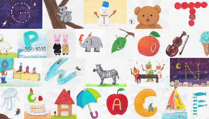 「A」から「Z」の頭文字からはじまる英単語のイラストです。